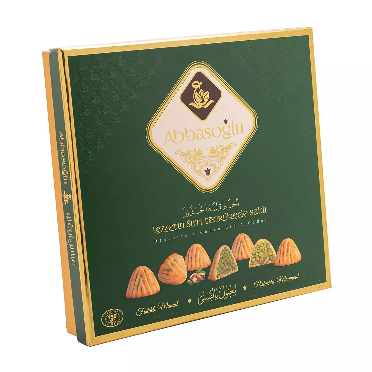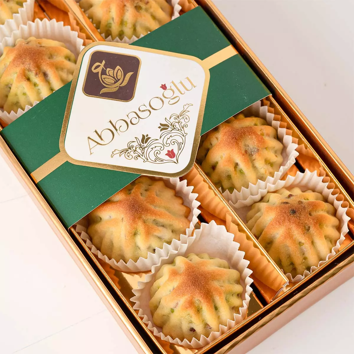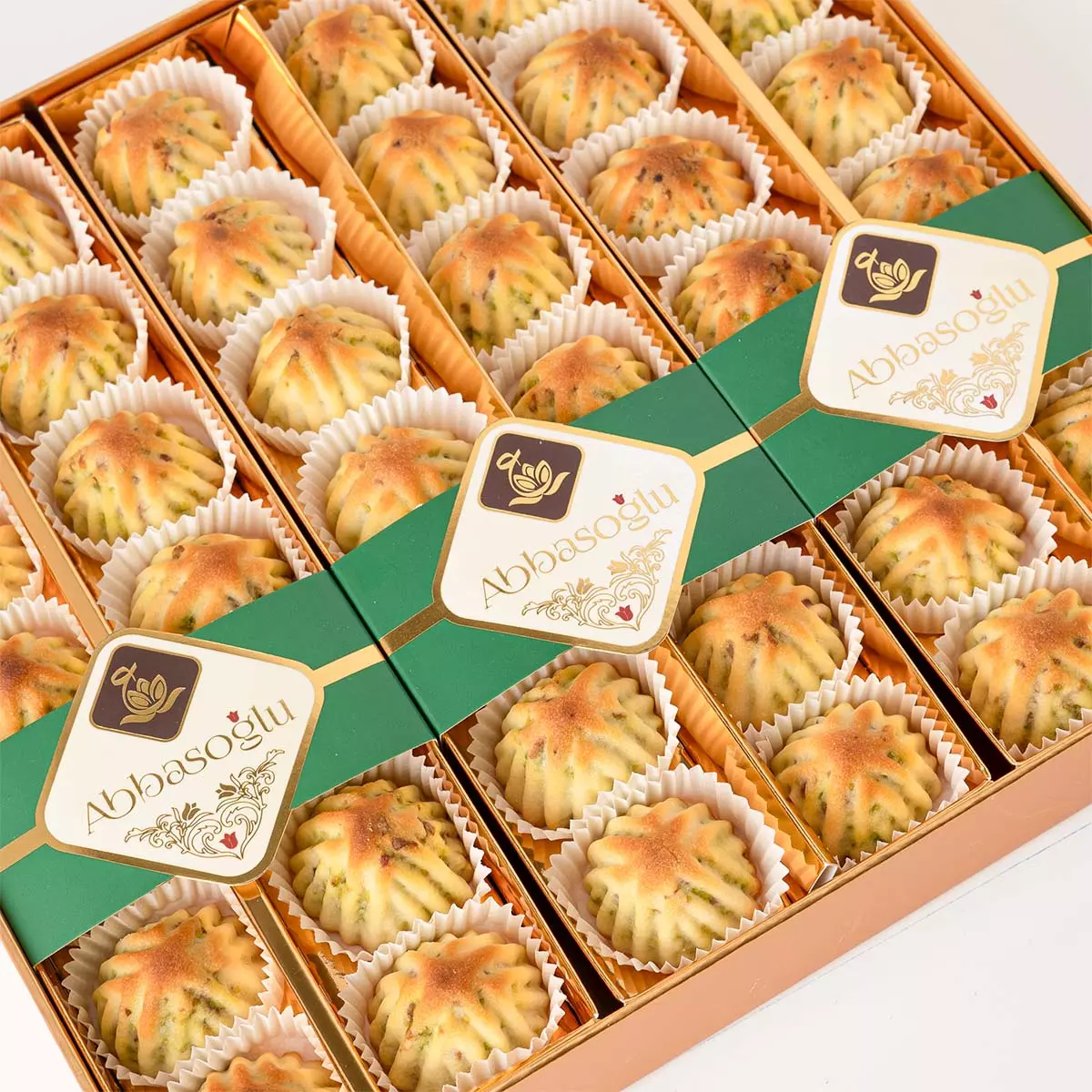 Özel irmikli hamurla hazırlanan, bol Antep fıstığı dolgulu fıstıklı maamoul kurabiye. Şerbetsiz, hafif ve ağızda dağılan yapısıyla kahve ve çay saatleri için ideal geleneksel bir lezzet.